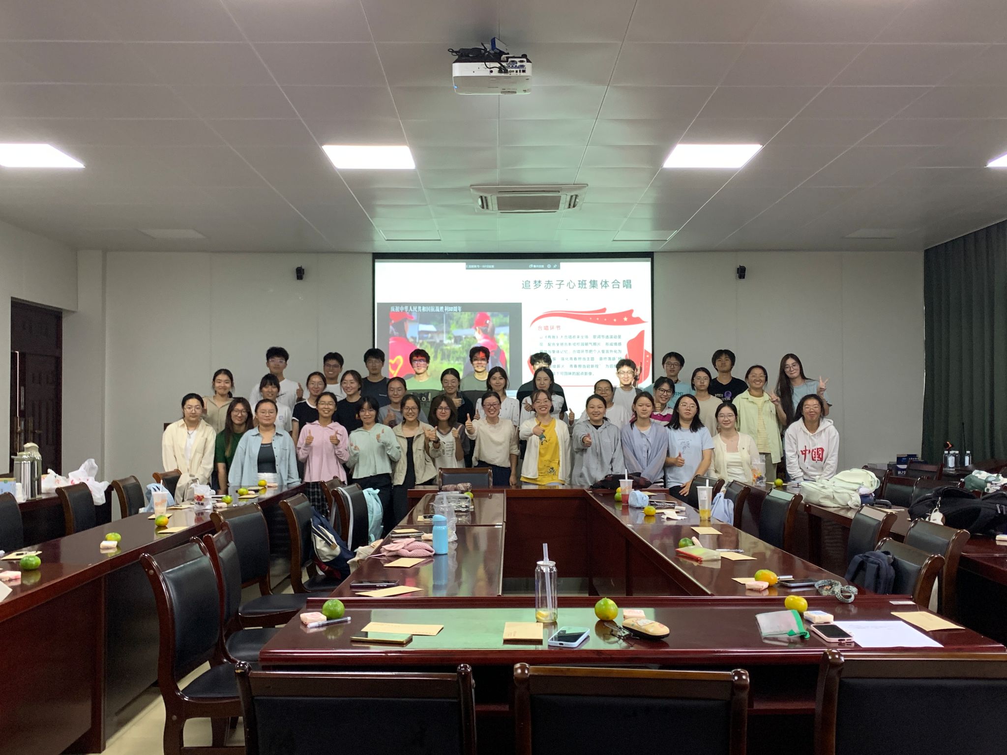 班会伊始,一段精心剪辑的纪实影像带领同学们穿越历史时空。镜头掠过今日繁华的南京城,回溯八十年前烽火岁月,特别是“南京·我们脚下的英雄城”故事分享,让同学们深刻体会到前辈们在民族存亡之际的坚守。随后开展的“抗战精神关键词”弹幕互动环节,瞬间点燃现场气氛,“担当”“坚韧”“爱国”“团结”等词汇在屏幕上持续刷屏,展现了新生对抗战精神内涵的深刻理解和情感共鸣。